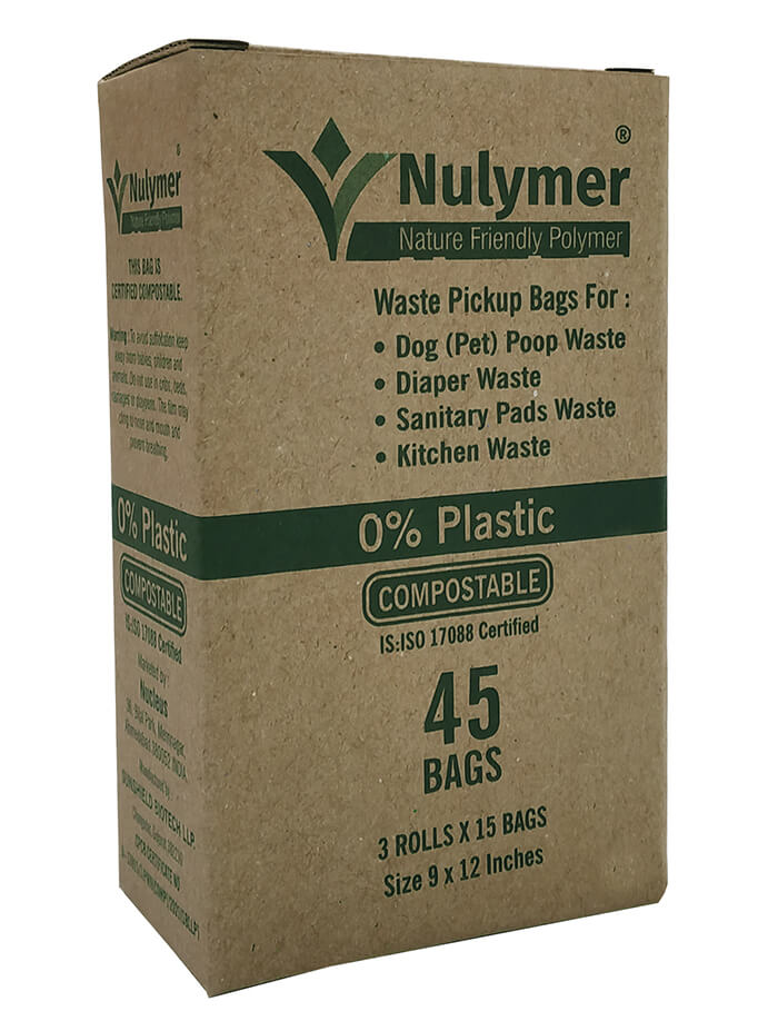 Nulymer ISO CERTIFIED COMPOSTABLE WASTE PICKUP BAGS SIZE 9X12 (INCH) 15 BAGS X 3 ROLLS An alternative to environmentally harmful plastic bags. 0% PLASTIC, for ₹249.00 via @amazon
